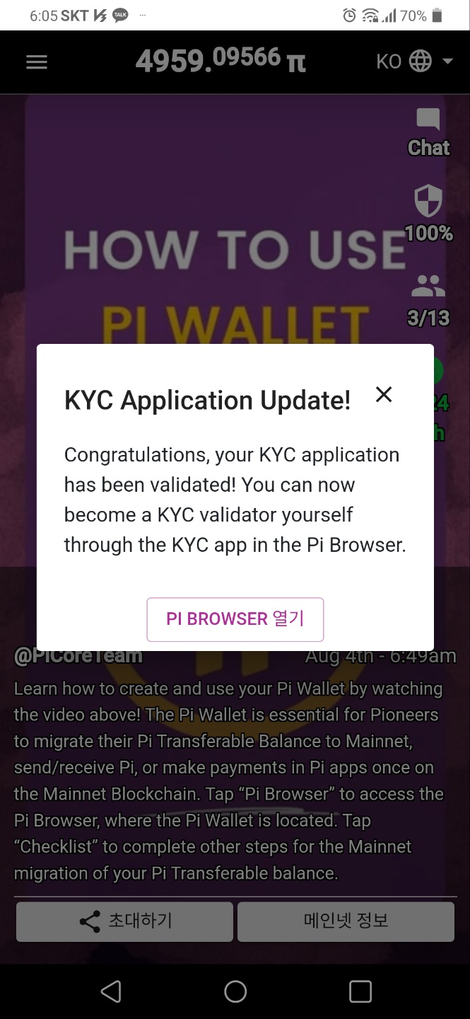 안녕하세요. 비타이 입니다. 그 동안 미뤄 뒀던 파이코인 KYC 신청을 토요일 오전에 신청했습니다. 여권을 이용해서 주민번호는 테이프로 가린 후에 KYC 를 신청했었습니다. Image [https://imgp.blurt.world/768x0/https://cdn.steemitimages.com/DQmVTssLjpVj2axuumiEeo2eZL9t4cPeBQ8riyEH78v6wVw/image.png] 그리고, 오늘 확인 해 보니 KYC가 통과 된 것을 확인했습니다. Image [https://imgp.blurt.world/768x0/https://cdn.steemitimages.com/DQmVcfSvCt7dfQLaBDxrCrpZ15qa99hn3CAJ9buuXhMvMJc/image.png] 검증단이 되면 추가로 파이를 채굴할 수 있는 데, 이것 저것 하다 보니 시간 때문에 검증단을 신청해야 할 지 고민입니다.